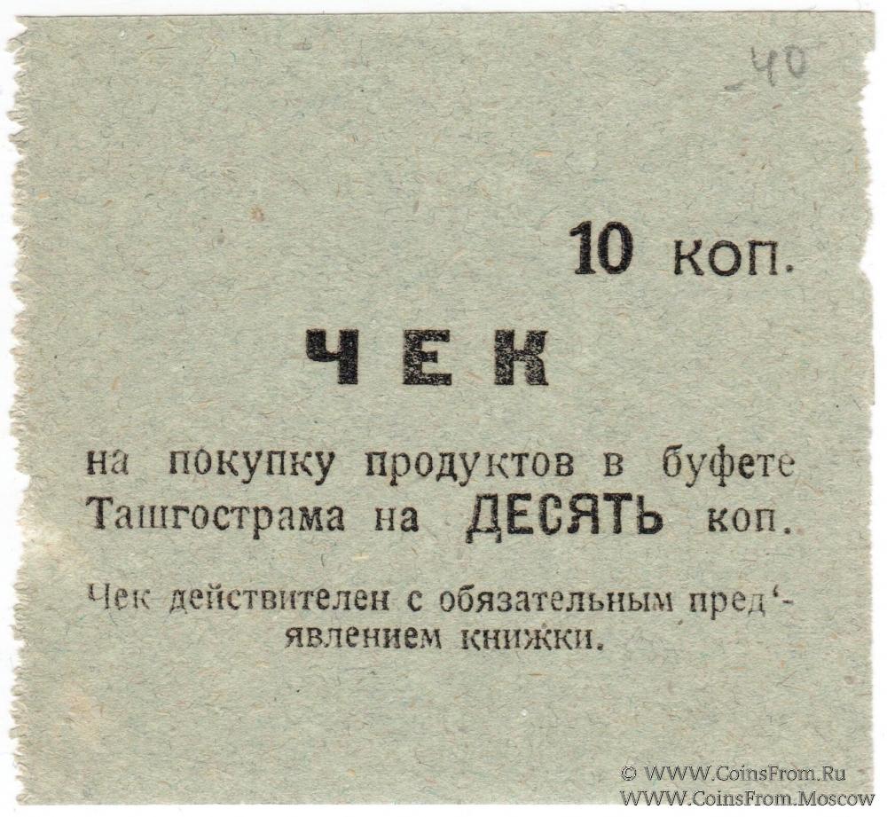 Серый оттенок. Чек без номера, без даты (1918 г.). Буфет треста "Ташгострам" (Ташкентский Государственный Трамвай).