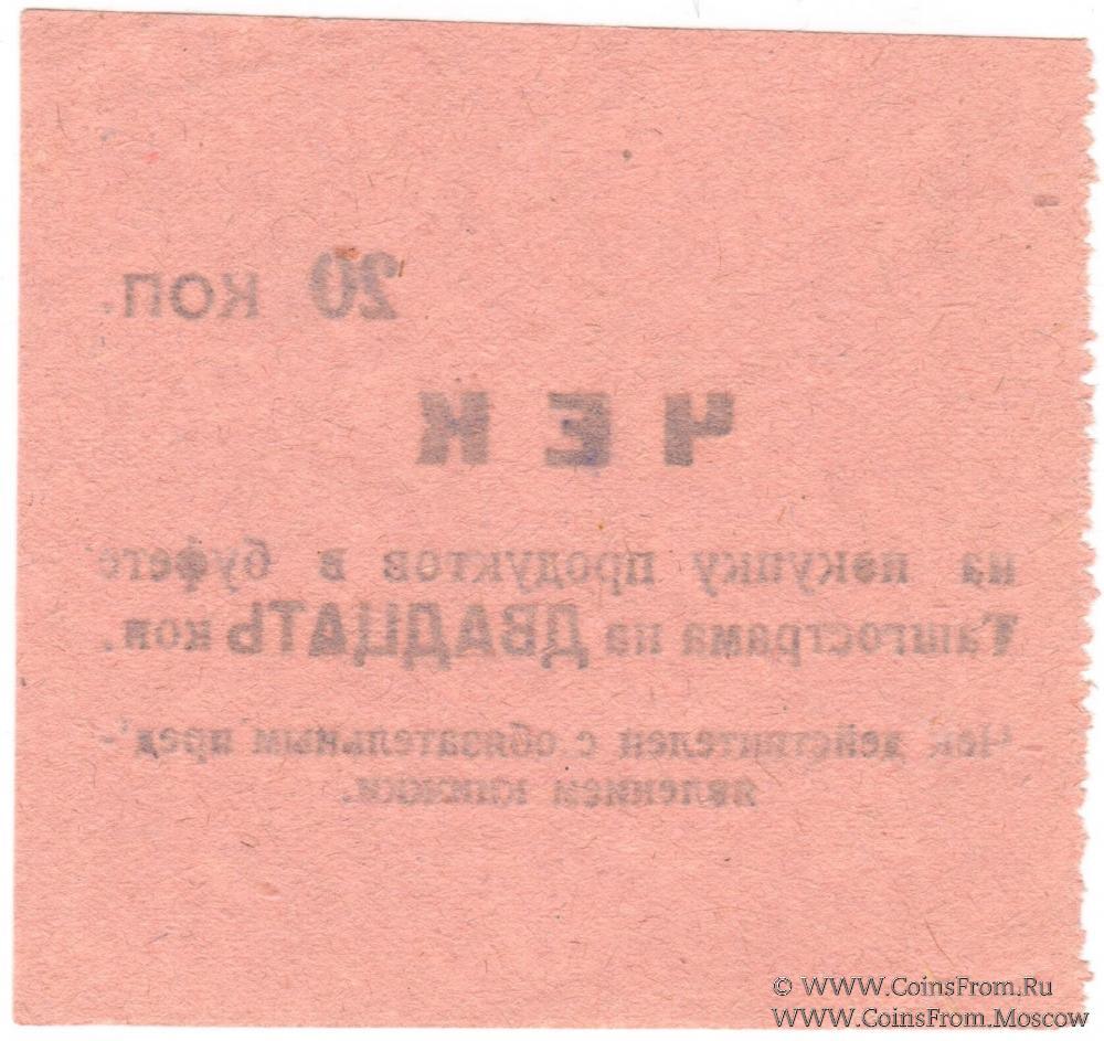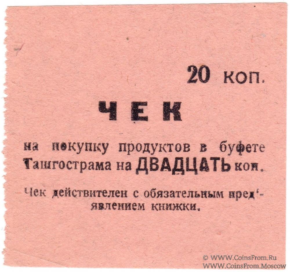 Чек без номера, без даты (1918 г.). Буфет треста "Ташгострам" (Ташкентский Государственный Трамвай).