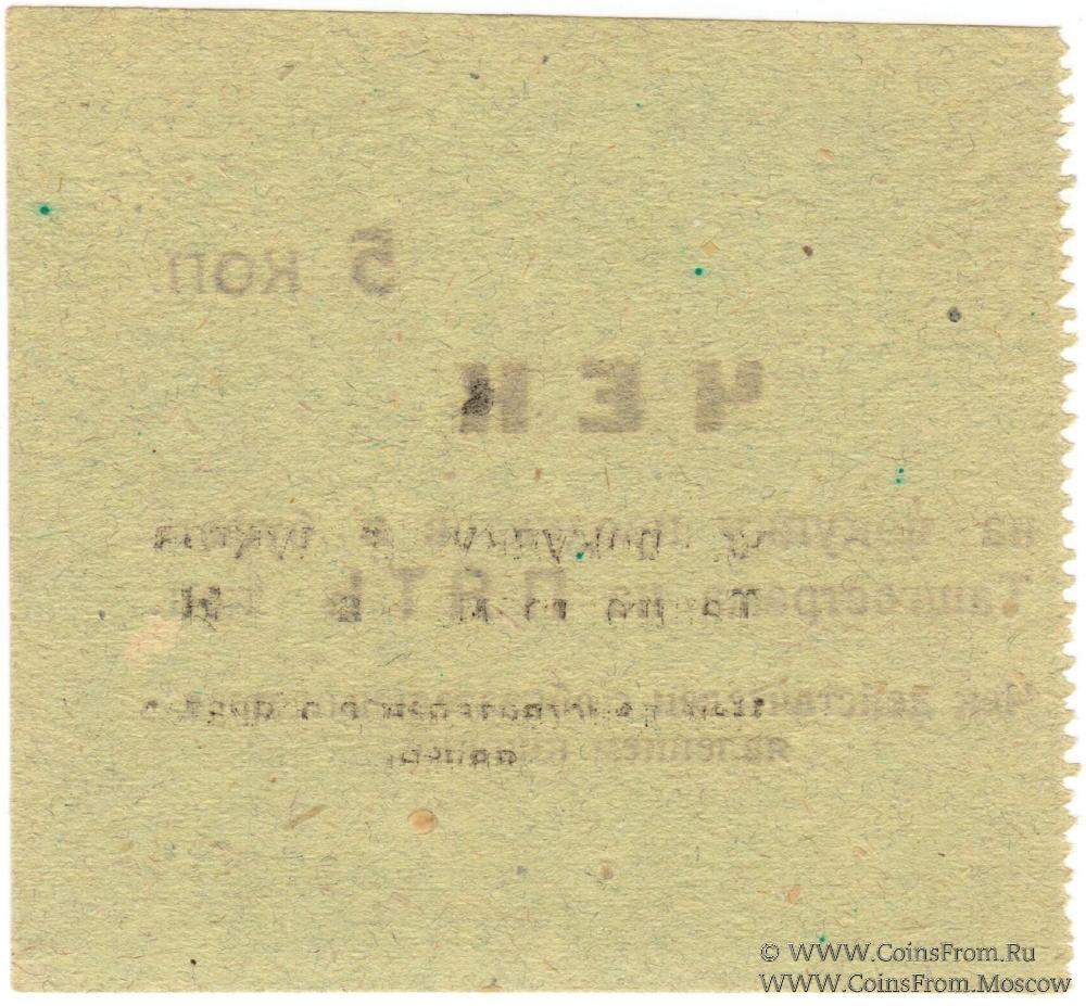 Серо-зеленый. Чек без номера, без даты (1918 г.). Буфет треста "Ташгострам" (Ташкентский Государственный Трамвай).