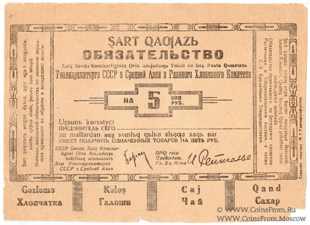 5 рублей 1930 г. (Ташкент)
