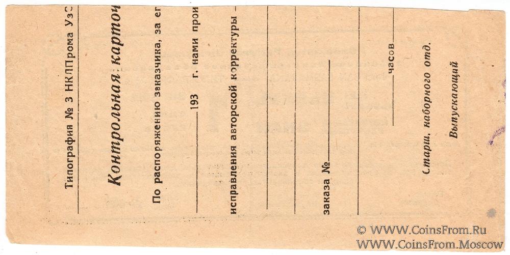 Серия Б. Вторичное использование: на реверсе Контрольная карточка Типографии № 3.