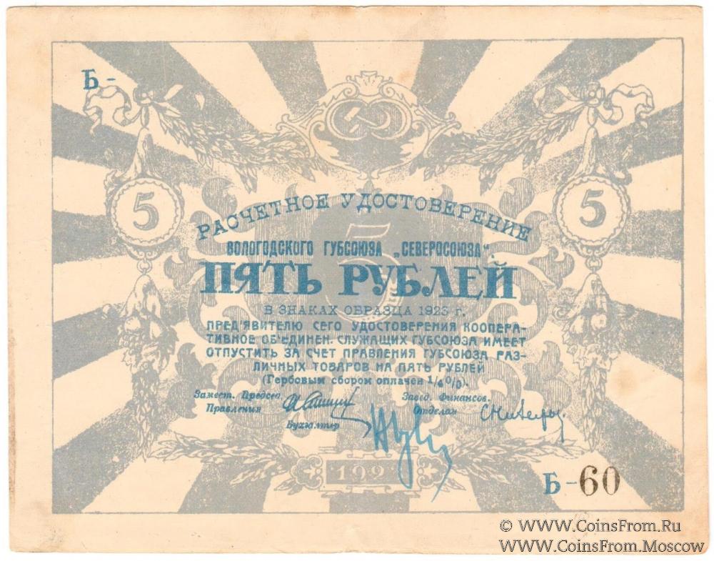 Расчетное удостоверение 1923 г. Серия Б. Номер справа снизу 2- значный. Вологодский Губсоюз "Северосоюз".