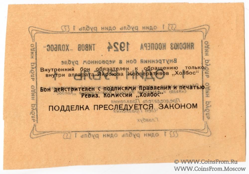 Внутренний бон в червонном рубле. Бланк. Яксоюз кооперативов "Холбос".
