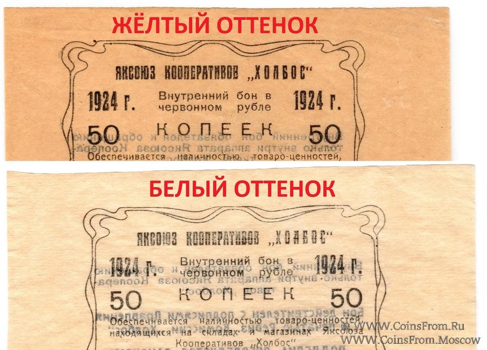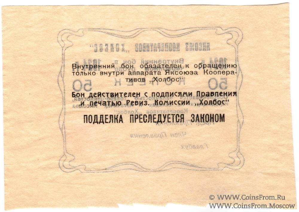 Внутренний бон в червонном рубле. Бланк. Бумага белого оттенка. Яксоюз кооперативов "Холбос".