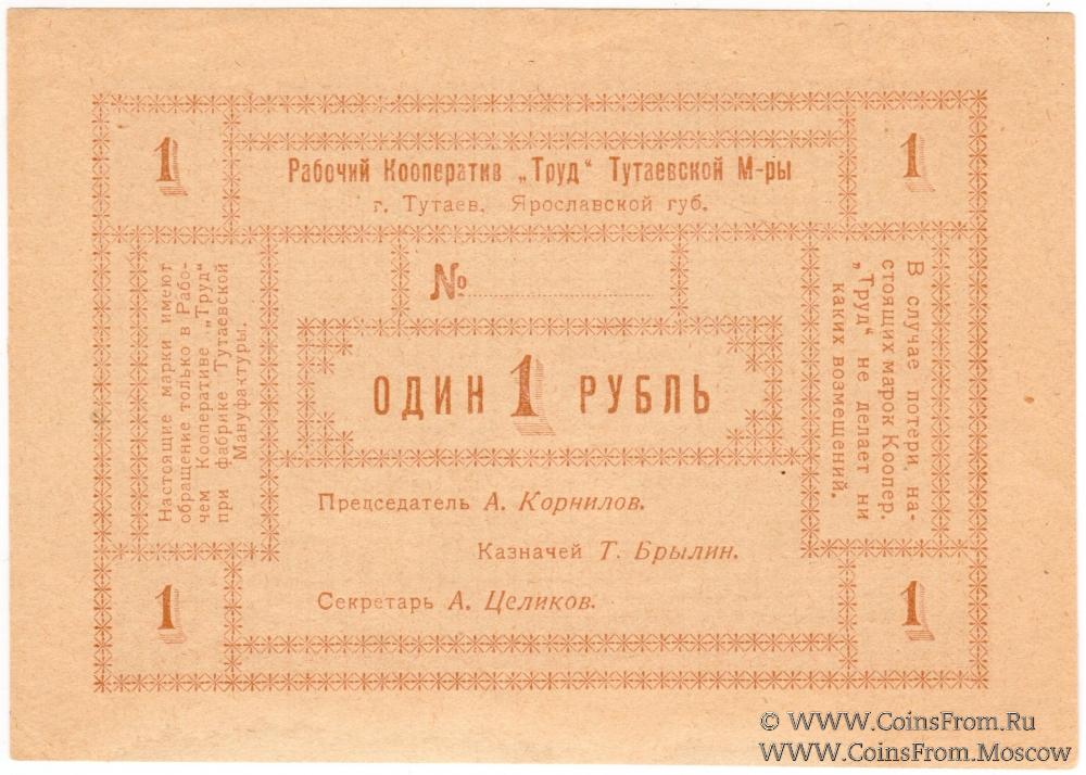 Марка без даты. Рабочий кооператив "Труд" Тутаевской мануфактуры.