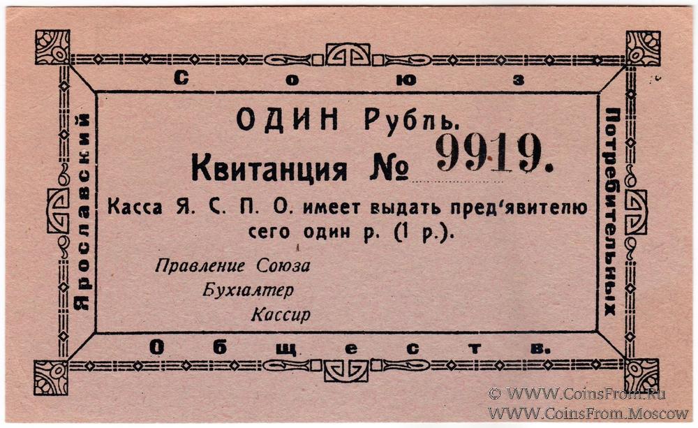 Квитанция без даты (1918 г.). Бланк с номером. Ярославский союз потребительских обществ (Я.С.П.О.).