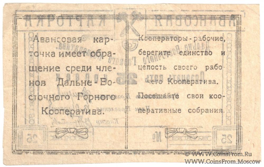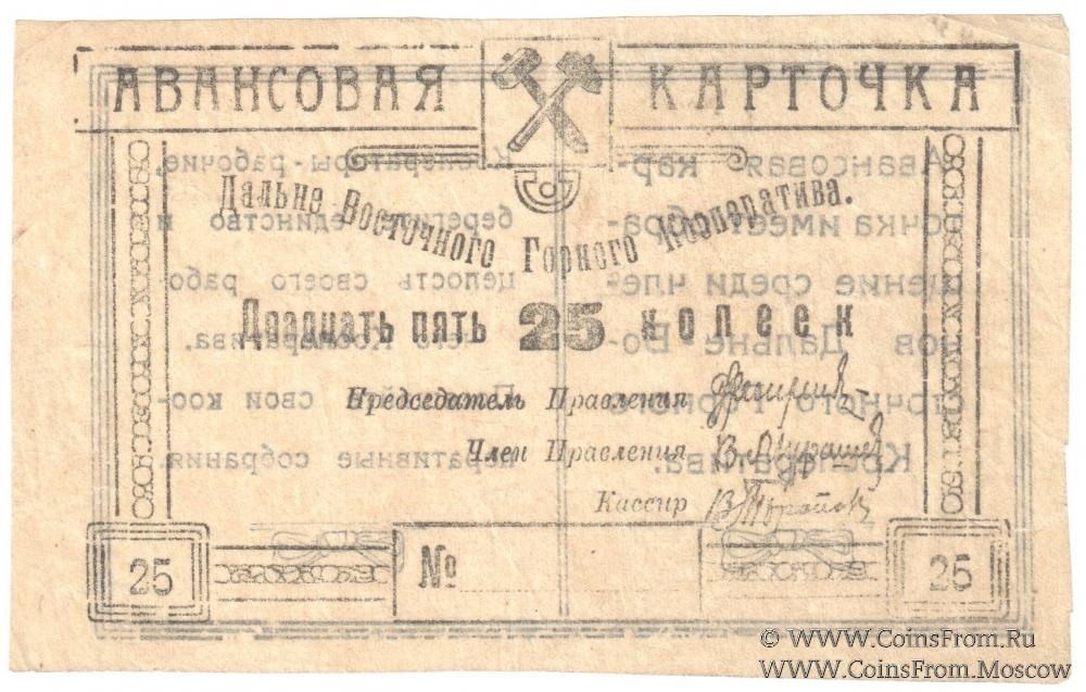 Авансовая карточка без даты. Бланк. Дальне-Восточный Горный Кооператив.