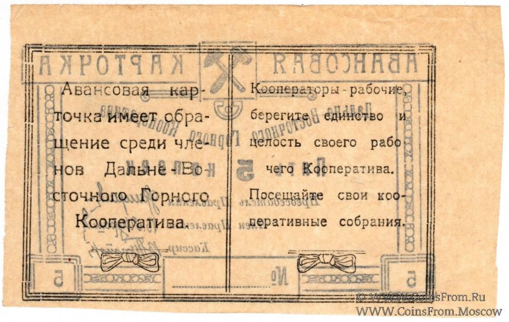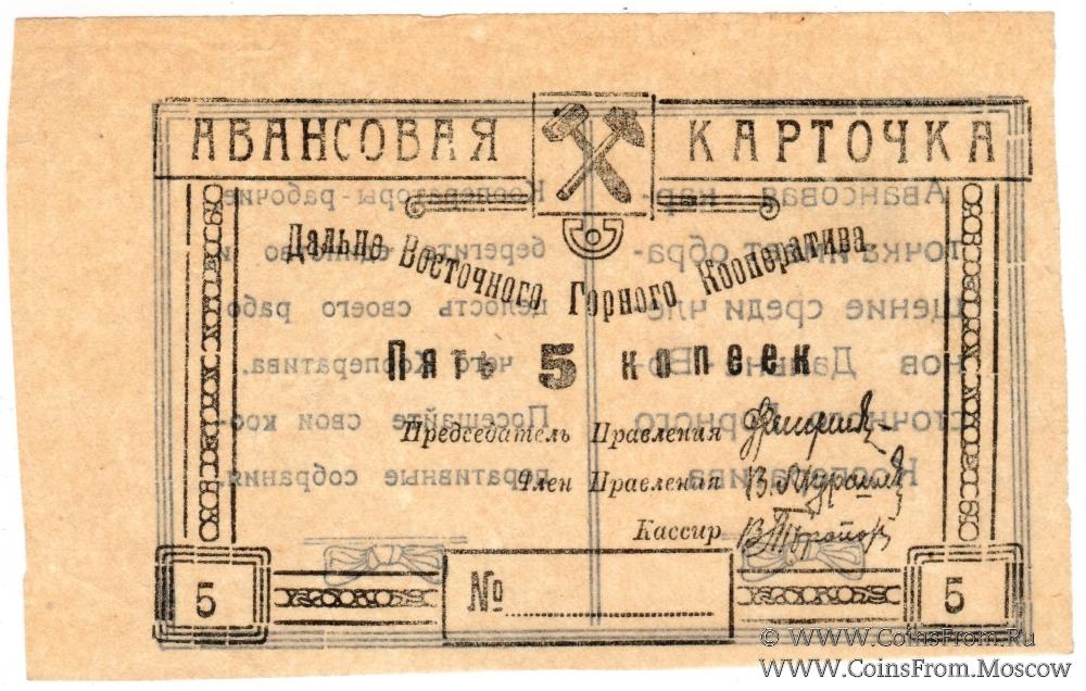 Авансовая карточка без даты. Бланк. Дальне-Восточный Горный Кооператив.