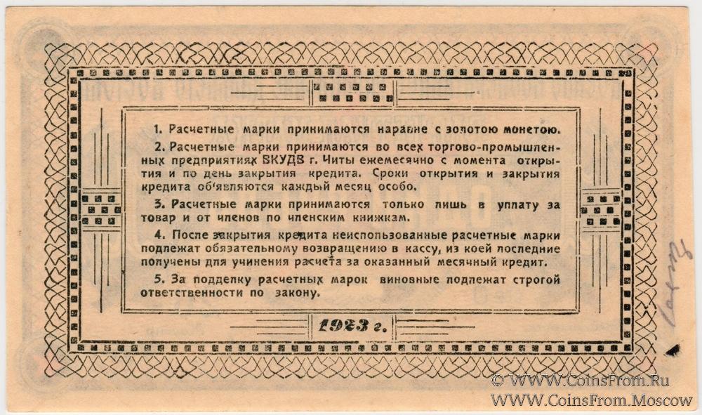 Расчетная марка. Серия О. Водяной знак. Военно-кооперативное Управление Дальнего Востока.