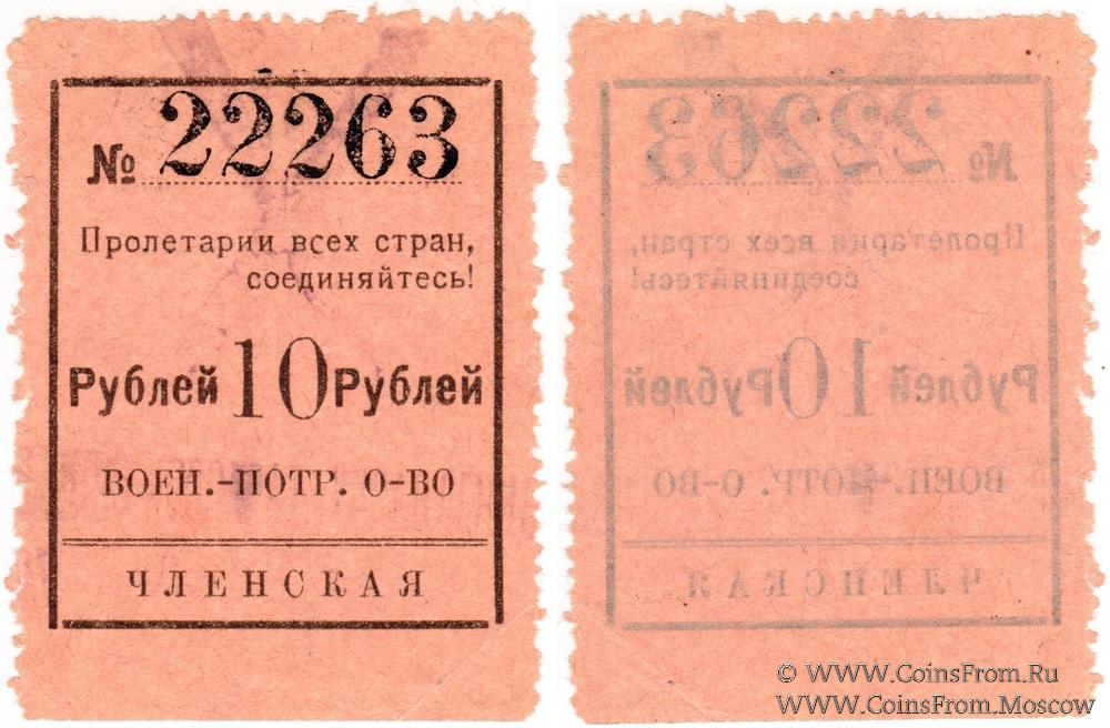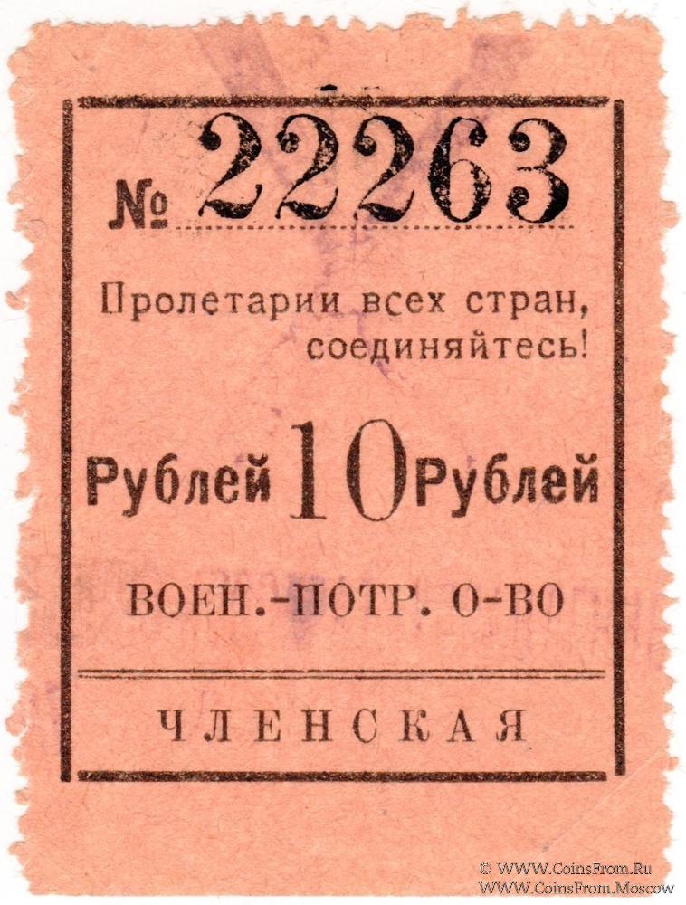 Членская марка без даты (1924 г.). Зубцовка с 3-х сторон. Гашение Х-образное. Военное потребительское общество.