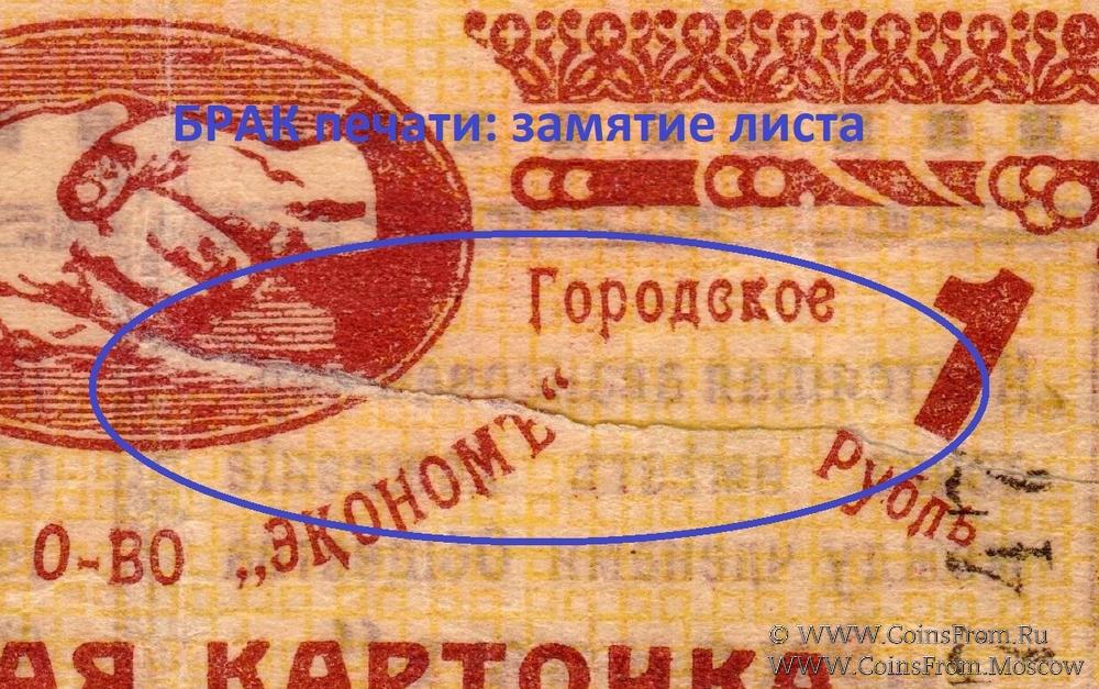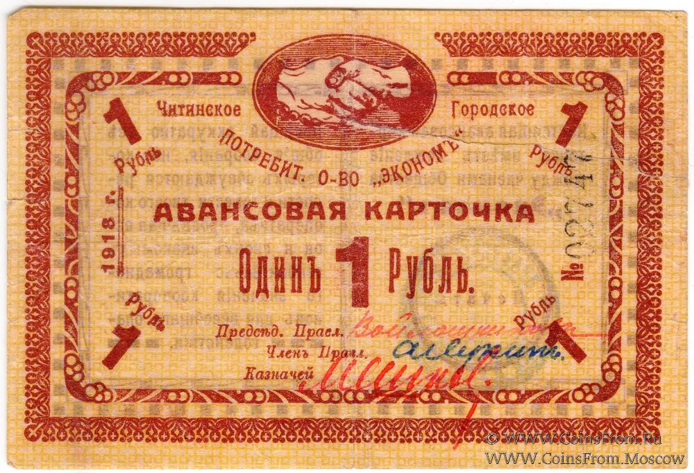 Авансовая карточка 1918 г. БРАК печати: замятие листа. Читинское Городское Потребительское Общество "Эконом".