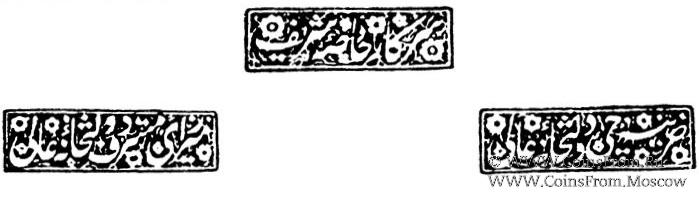 Печати-подписи прямоуголные: Шрифт белый; Благородный управляющий личными делами, Почтенный секретарь великого государства, Казначей великого государственного дома.