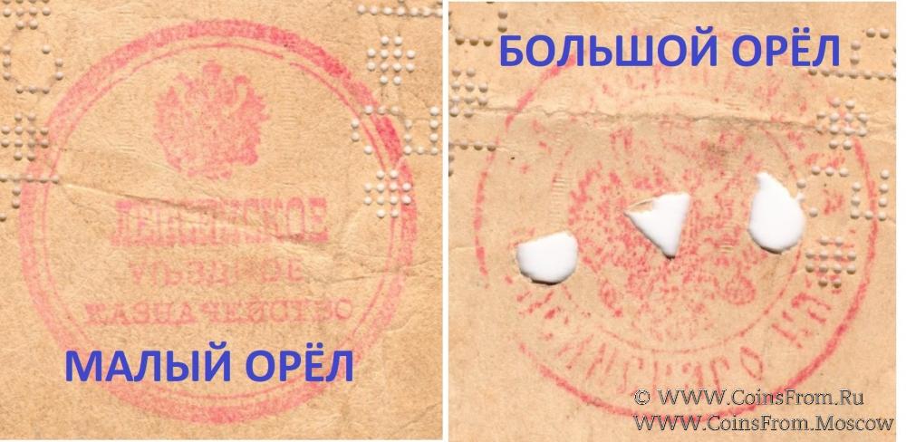 Варианты изображения орла на печати (на реверсе): 1. Малый орёл. 2. Большой орёл. Лепсинское Уездное Казначейство.