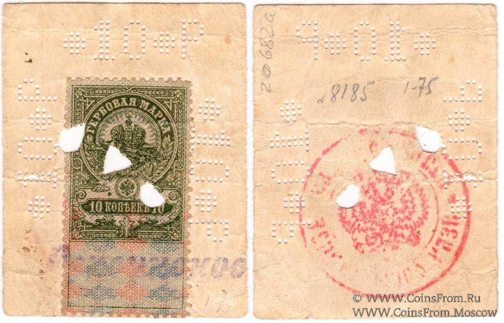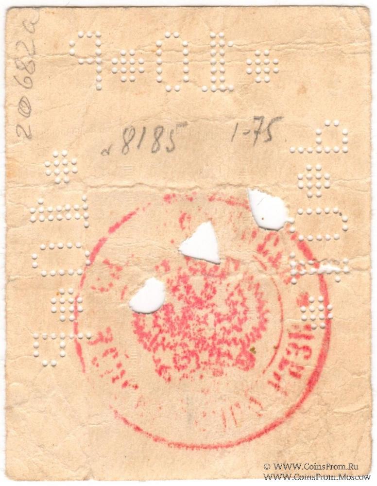 Марка на бумаге с надпечаткой фиолетового цвета "Лепсинское". Гашение. На реверсе печать с большим орлом. Лепсинское Уездное Казначейство.