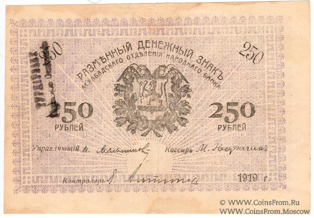 Разменный Денежный Знак 1919 г. Штамп в две строки "Турнарбанк Мервское отделение" черного цвета на аверсе. Мервское Отделение Туркестанского Народного банка (бланк Ашхабадского отделения Народного Банка).