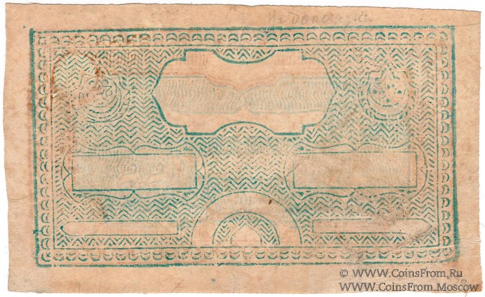 Выпуск 1920 г. на бланках бухарского эмирата (1337-1339). Бумажные деньги (50, 100, 200, 500, 1.000, 2.000, 3.000, 5.000 и 10.000 теньгов).