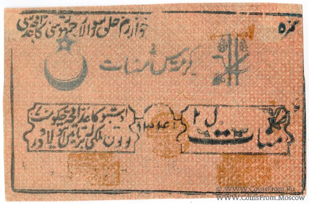 Фон розово-голубой, шрифт чёрный, номинал голубой. Бумажные деньги 1922 г. (١٣٤١ / 1341).