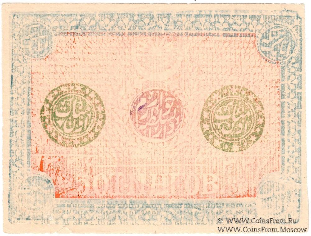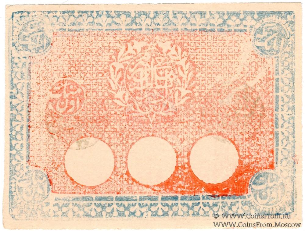 Выпуск 1 на бумаге. Бланк. Надпись номинала "ТИNГОВ". Правительство Падишаха Сеид-Абдуллы-Хана (خانان خیوہ).