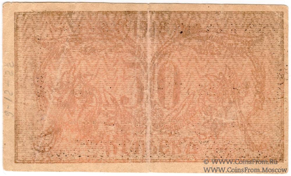 Билет 1918 г. без подписей, без нумерации, без водяных знаков. Фон коричневый. Семиреченский Совнарком.
