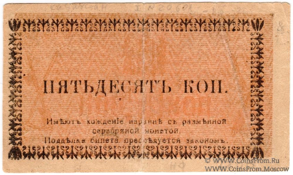 Билет 50 копеек 1918 г. Семиреченский Совнарком