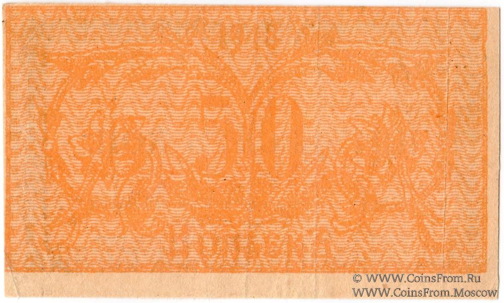 Билет 50 копеек 1918 г. Семиреченский Совнарком