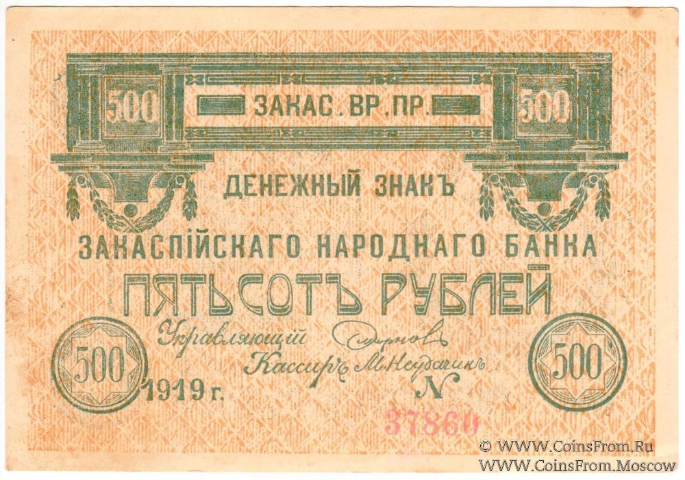 Денежный знак 1919 г. № 37860. Ашхабадское отделение Закаспийского Народного Банка.