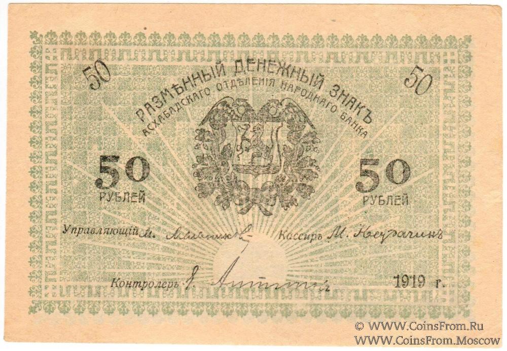 Разменный Денежный Знак 1919 г. Сетка фона зеленая. Ашхабадское отделение Народного Банка.
