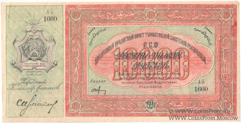 Временный Кредитный билет Туркестанской Советской Республики 1920 г. Серия АБ. Водяной знак - "соты". Номер 4-значный. Кассир - Чухин.