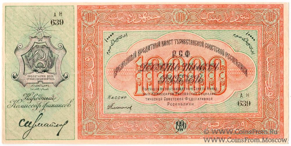 Временный Кредитный билет Туркестанской Советской Республики 1920 г. Серия АН. Водяной знак - "соты". Номер 3-значный. Кассир - Платонов.