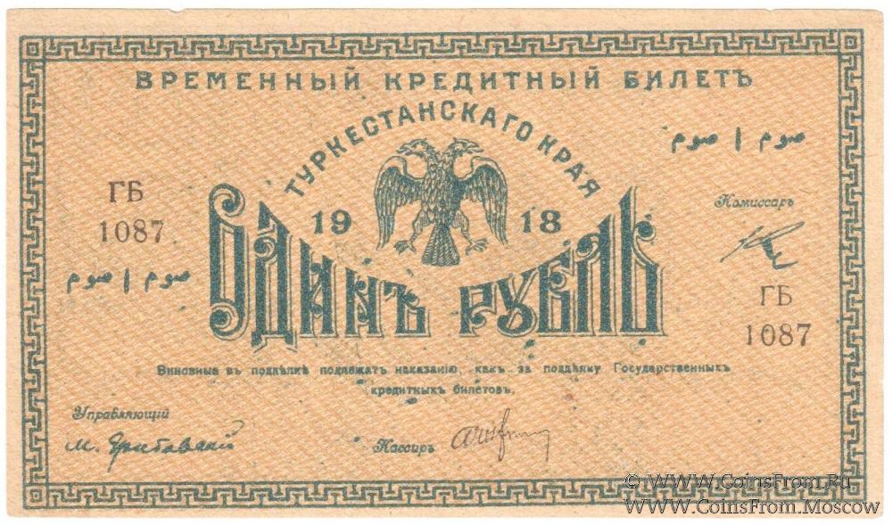 Временный Кредитный билет Туркестанского края 1918 г. Литера Б. Кассир - Чухин.