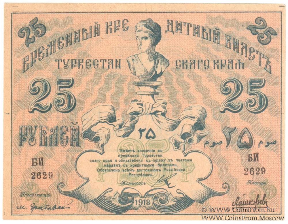 Временный Кредитный билет Туркестанского края 1918 г. Шрифт синий. Номер 4-значный. Литера И. Кассир - Лашкарев.