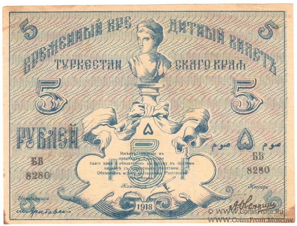 Временный Кредитный билет Туркестанского края 1918 г. Литера В. Кассир - Овсянников.