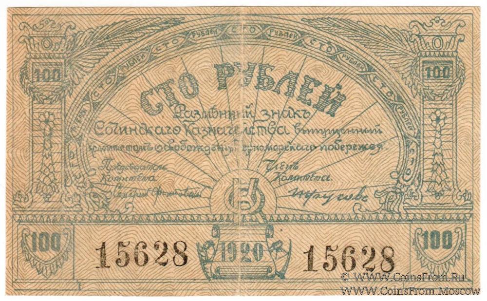Разменный знак Сочинского Казначейства 1920 г. Номер черный 7 мм. Комитет освобождения Черноморского Побережья.