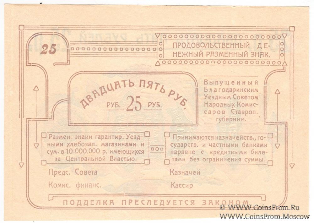 Продовольственный денежный разменный знак без даты (1918 г.) на вексельных бланках.