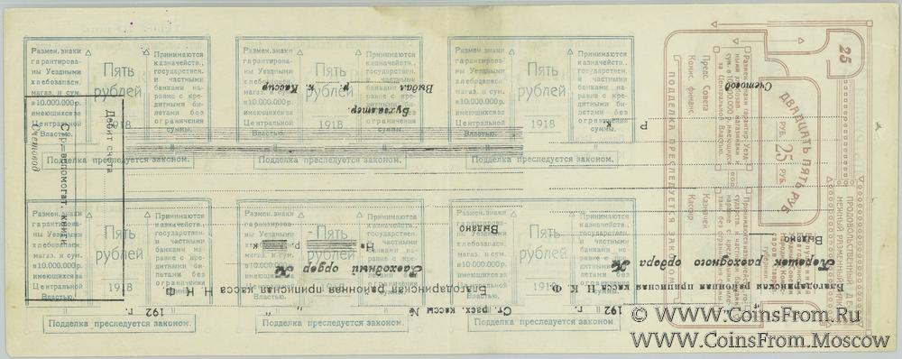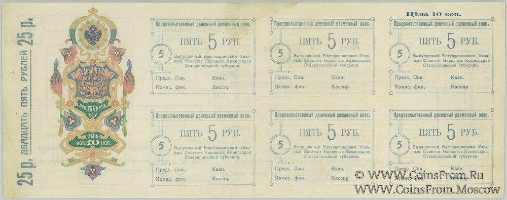 Лист 6 х 5 рублей и 25 рублей 1918 г. (Благодарное)