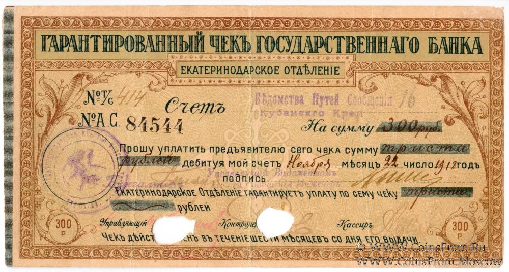 Чек № 84544. 22.11.1918 г. Счет Ведомства Путей Сообщения. Гашение.