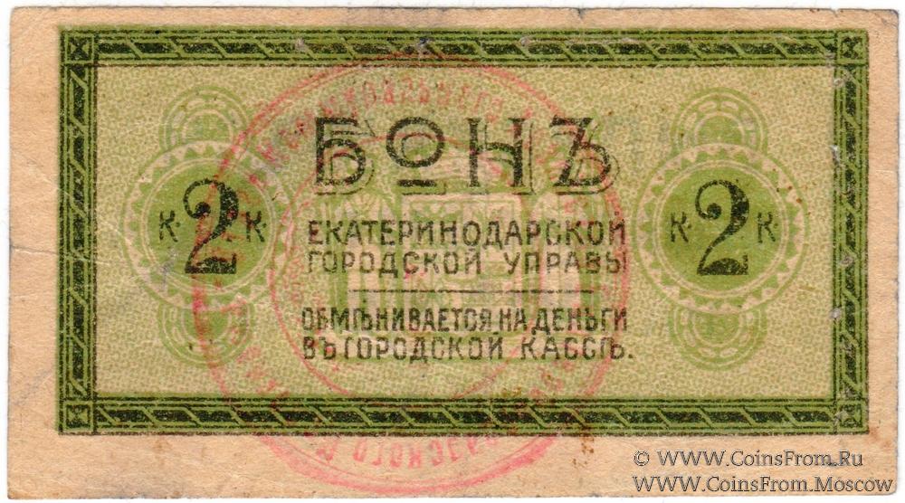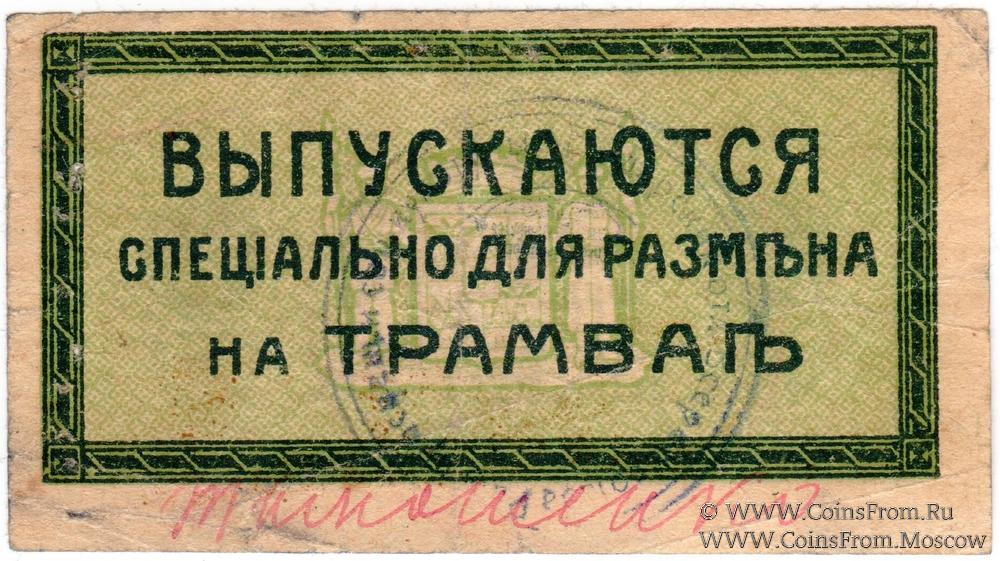 Бон для трамвая без даты (1918 г.). Зеленый. С печатью на аверсе (красная) и реверсе (синяя). Екатеринодарская Городская Управа.