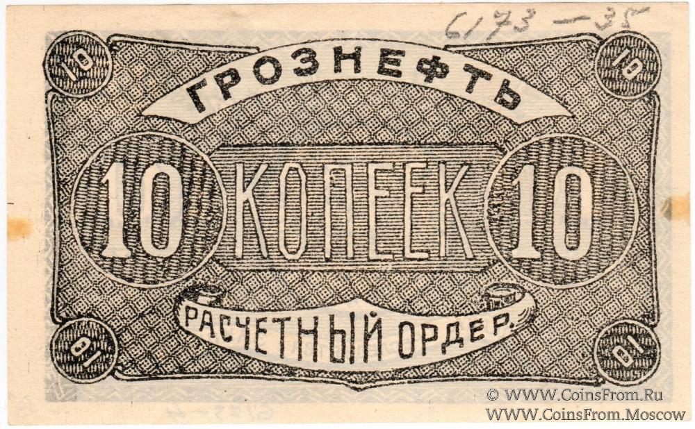 Расчетный ордер 1922 г. В.С.Н.Х. Главного управления по топливу. Грозненское центральное нефтяное управление. Грознефть.
