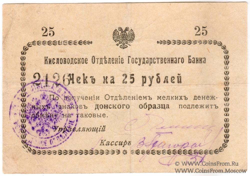 Чек (1919), Малый орёл. Кисловодское Отделение Государственного Банка.