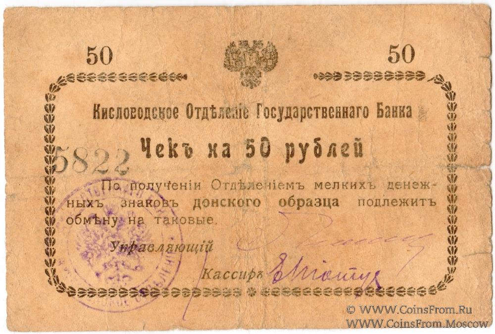 Чек без даты (1919 г.). Без серии. Большой орёл. Кисловодское Отделение Государственного Банка.