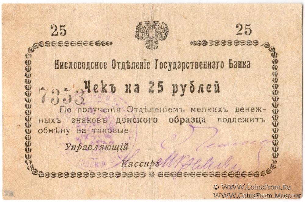 Чек (1919). Большой орёл. Кисловодское Отделение Государственного Банка.
