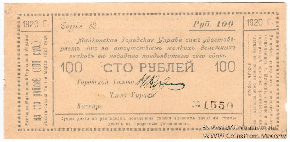 100 рублей 1920 г. (Майкоп)