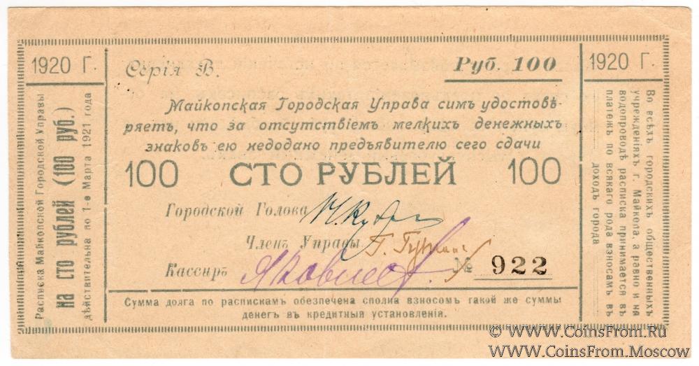 100 рублей 1920 г. (Майкоп)