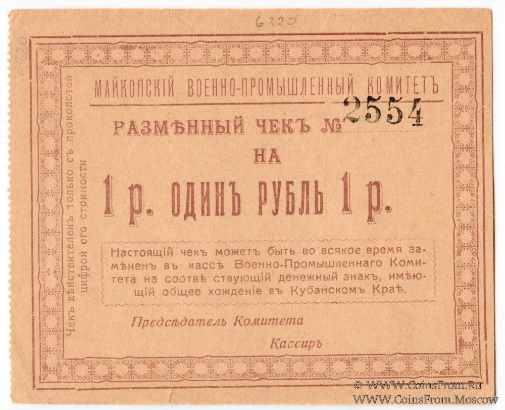 Разменный чек без даты (1919 г.). Бланк. Майкопский Военно-Промышленный Комитет.
