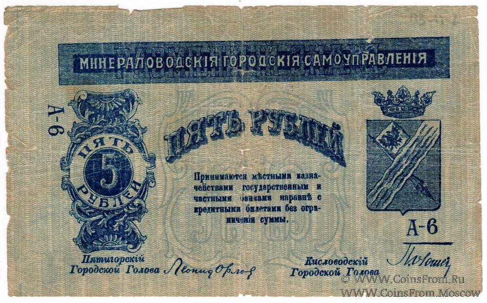 5 рублей 1918 г. (МинВоды) ОБРАЗЕЦ
