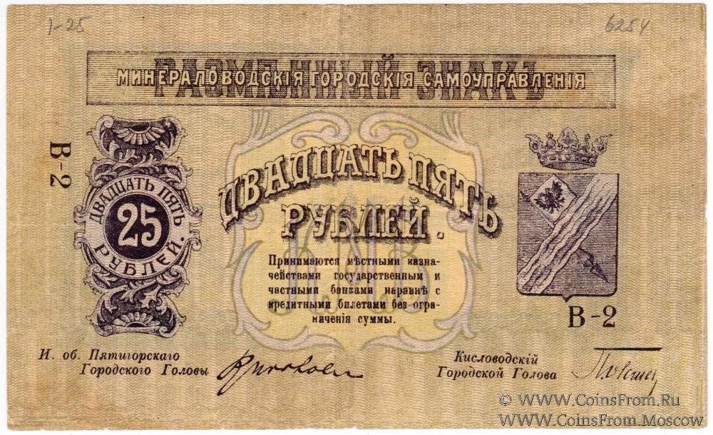 Разменный знак 1918 г. Выпуск 3. Литера "В". Минеральные Воды. Минераловодское Городское Самоуправление.