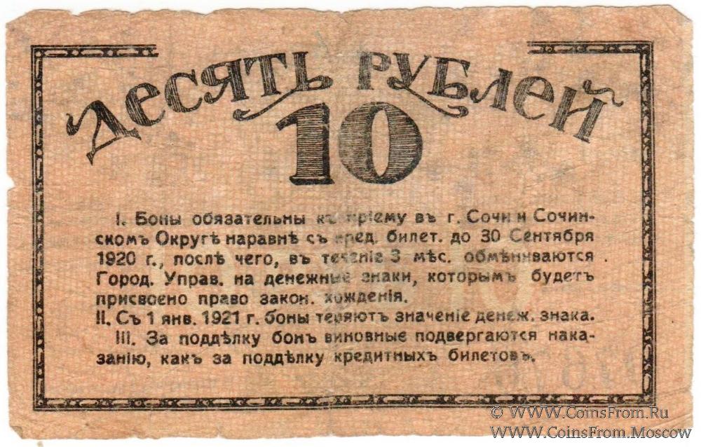 10 рублей 1919 г. (Сочи)
