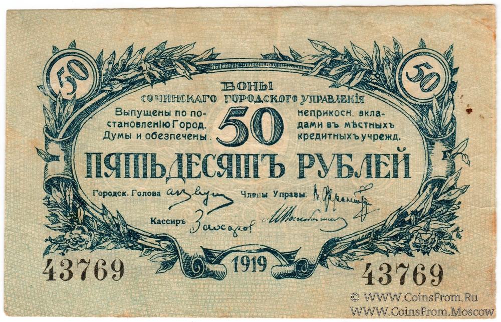 Бон Сочинского Городского Управления 1919 г. Номер 6 мм. Сочинское Городское Управление.