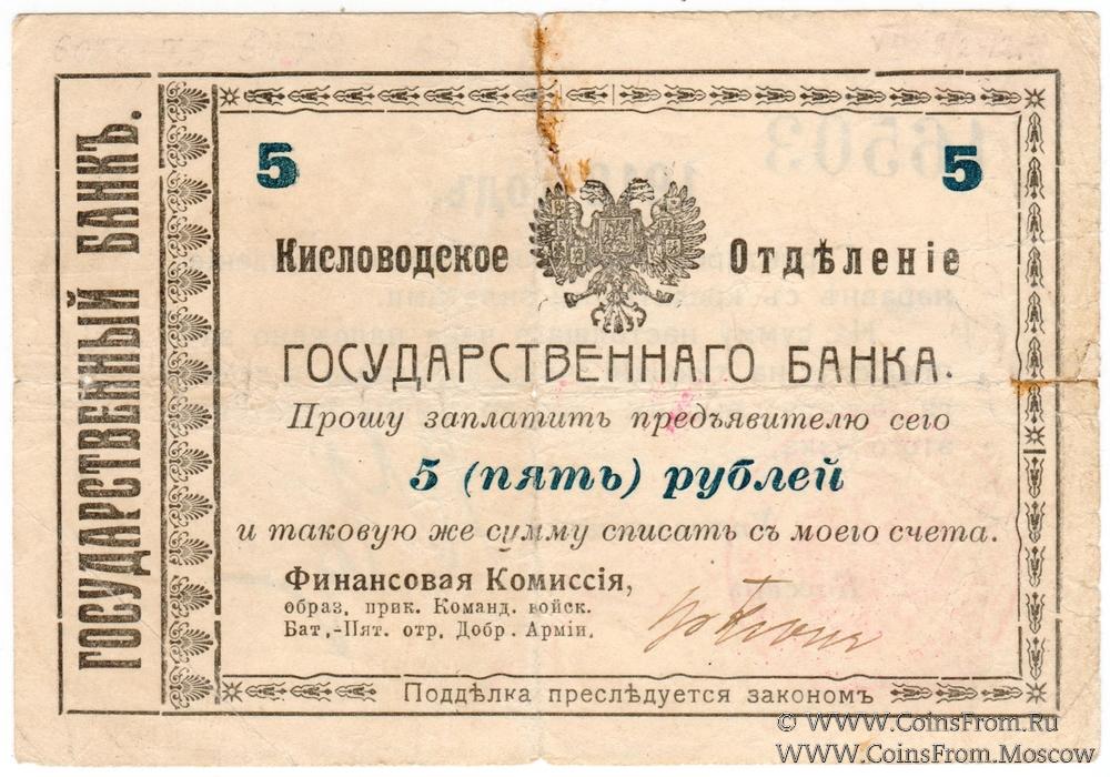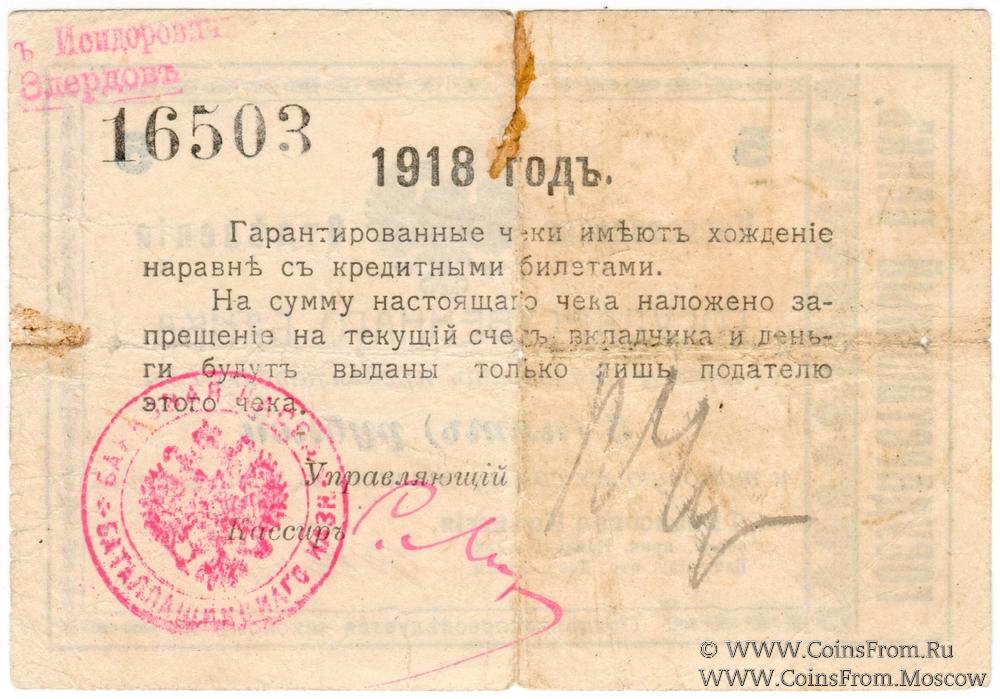 Гарантированный чек 1918 г. С печатью Баталпашинского Казначейства (на реверсе). Кисловодское Отделение Государственного Банка.