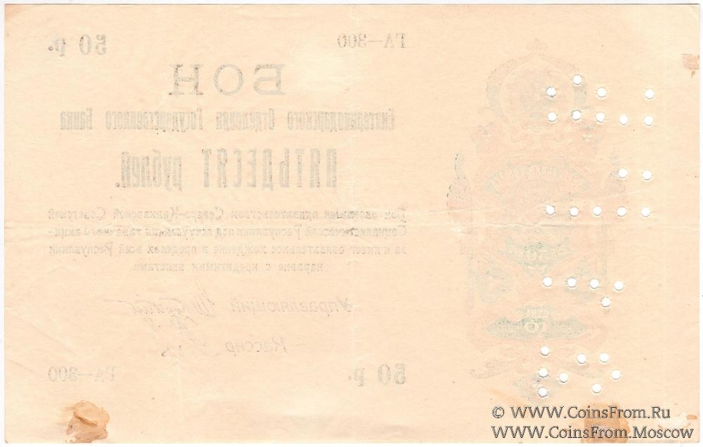 Бон без даты (1918 г.). С перфорацией "21 ГБ". Управляющий - Сикорский. Вариант подписи кассира. Екатеринодарское Отделение Государственного Банка.